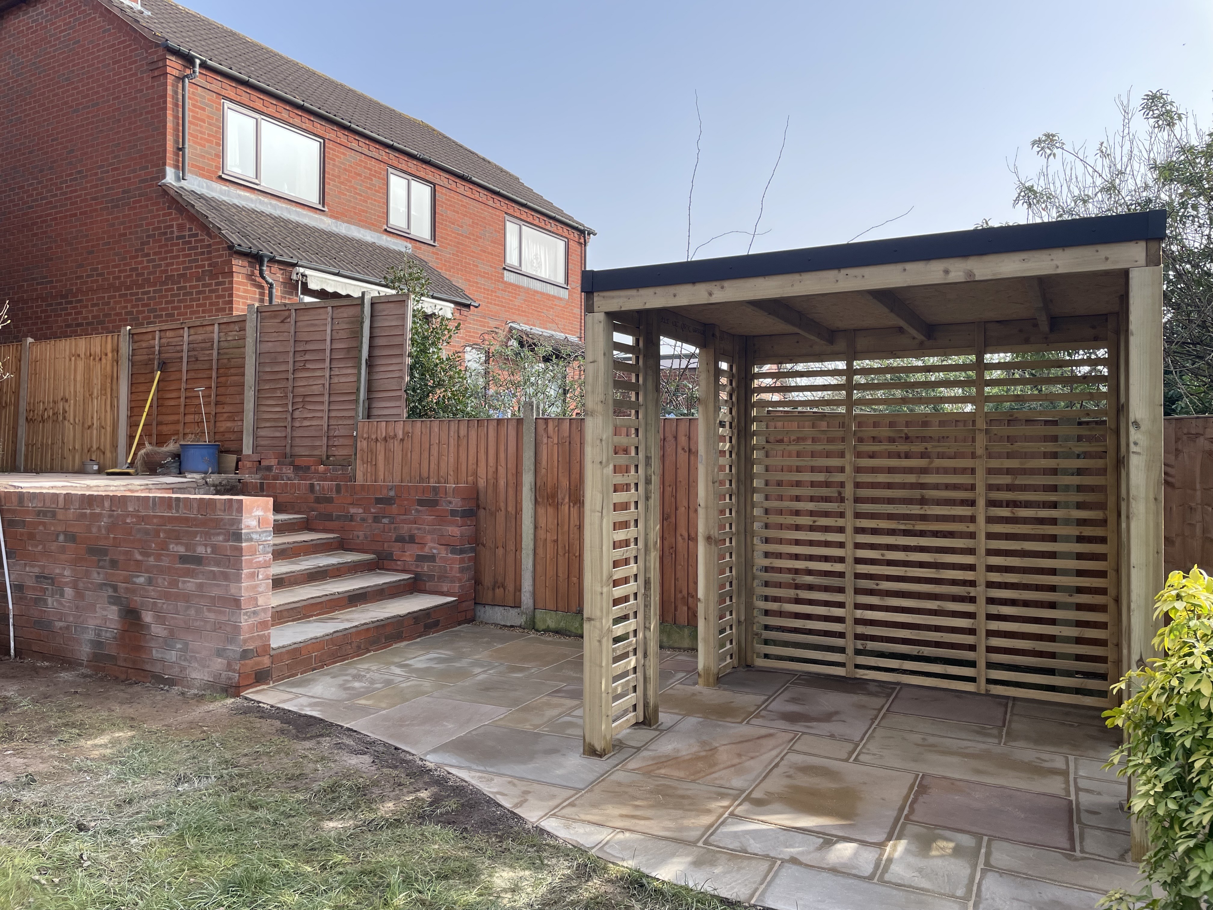 Pergola, raised bed, paving and fence for customer.
